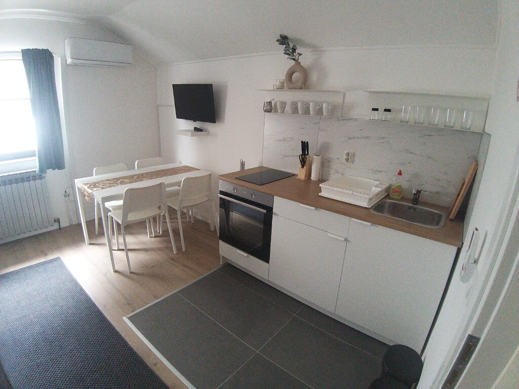 Interijer je svijetao i ugodan, s naglaskom na čistoću i detalje koji stvaraju osjećaj doma. Studio je opremljen svime potrebnim za kraći ili duži boravak – od udobnog kreveta i potpuno opremljene kuhinje do modernog kupaonskog prostora. Prikladan je za samostalne goste, parove i poslovne putnike.